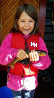Michelle på fisking i Telemark. Vi valgte å fiske med mark. Barna øver også på å kaste med stang.